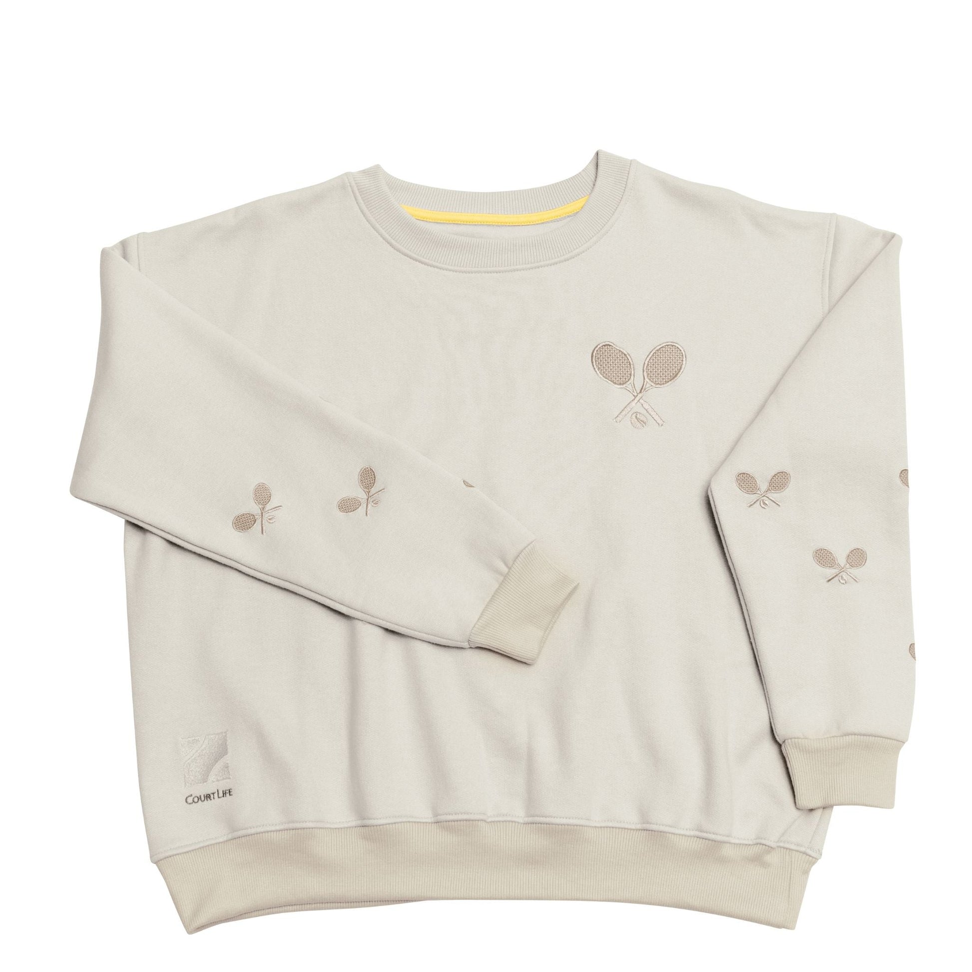 Serve up style and comfort with the CourtLife Tennis Racquets Sleeves Sweatshirt, crafted from a soft and breathable Peruvian cotton blend. This women’s tennis sweatshirt features embroidered tennis racquets on the sleeves and front, creating a playful yet polished look that’s perfect for on or off the court.